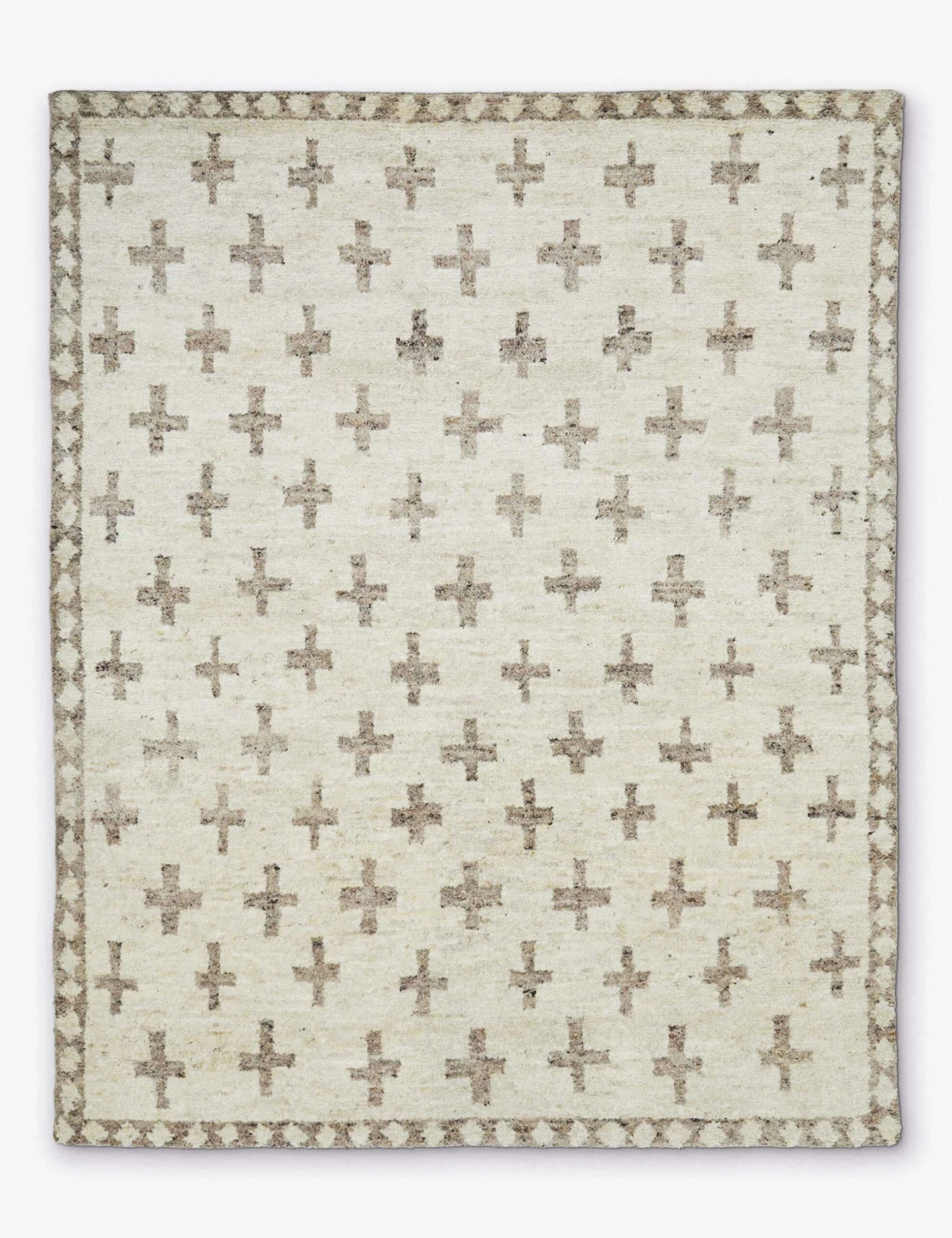 Infuse your space with the uninhibited yet refined look of this Moroccan rug. This plush, soft rug is created with a unique hand-knotted technique that utilizes natural, undyed and handspun wool for a durable yet luxe shag finish. Designed with a repeating cross pattern and geometric border, this stunning neutral floor rug is full of texture and style.