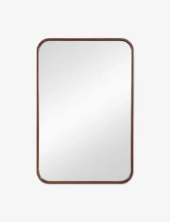 Infuse your space with a little mid-century style when you add this rectangular mirror to bare walls. A thick walnut frame, rounded corners, and deep inset edge add a retro look that pairs well with more contemporary elements!