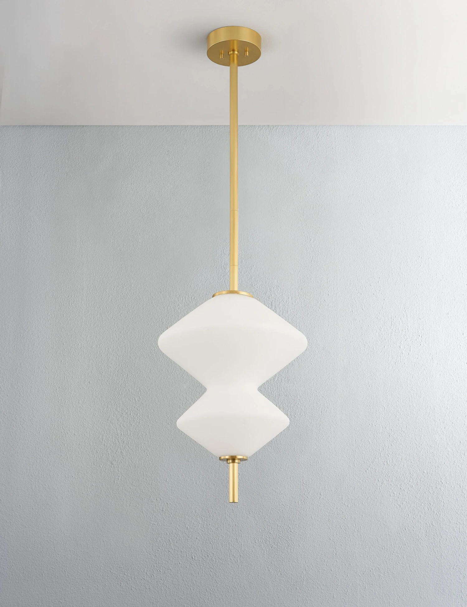 Angular shades bring a geometric edge to the Ayrton pendant. The slim, brass-finished frame adds polished appeal while keeping the profile streamlined and versatile, so you can style this pendant light for almost any modern space.