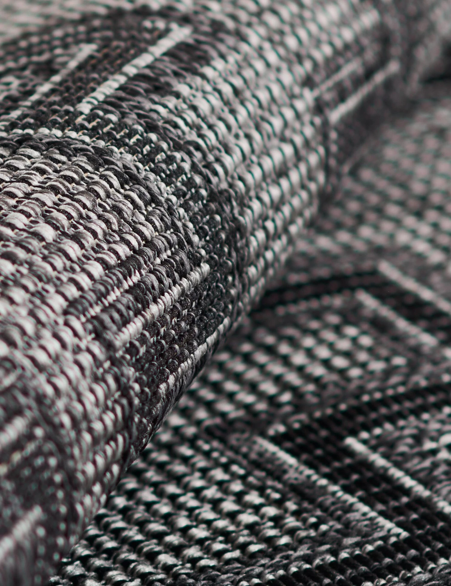 A moody black color palette is highlighted by a stepped, geometric pattern to make this flatweave area rug a refined accent for your home. Weather-resistant and durable, this floor rug is a great fit for outdoor living spaces, as well as high-traffic areas like entryways and living rooms.
