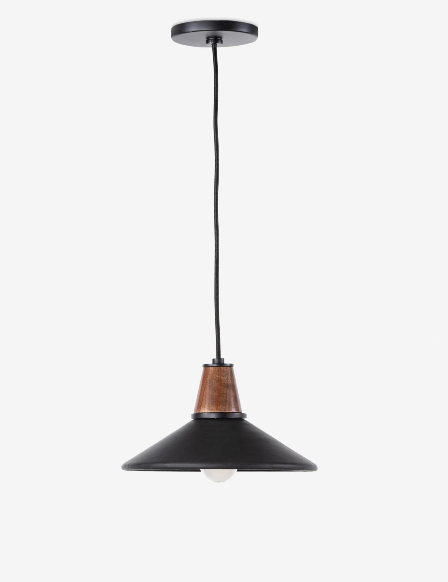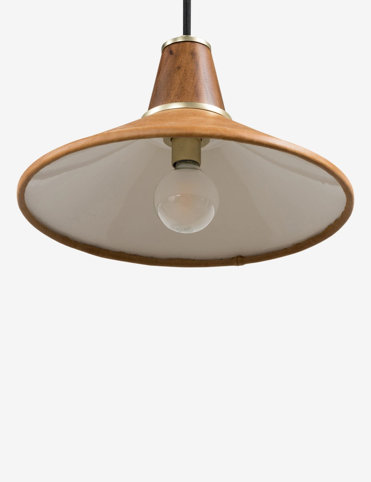 Top-grain leather, solid walnut, and metal accents bring beautiful mixed materiality to bear in this mid-century-inspired lighting collection. The Doherty pendant light features a sleek, classic silhouette that can style as a single hanging light fixture or in multiples for an eye-catching overhead feature.