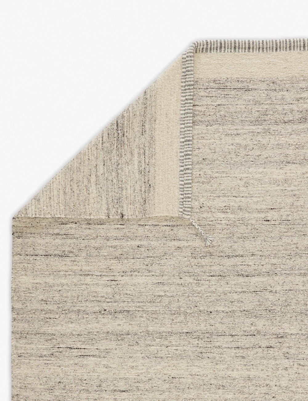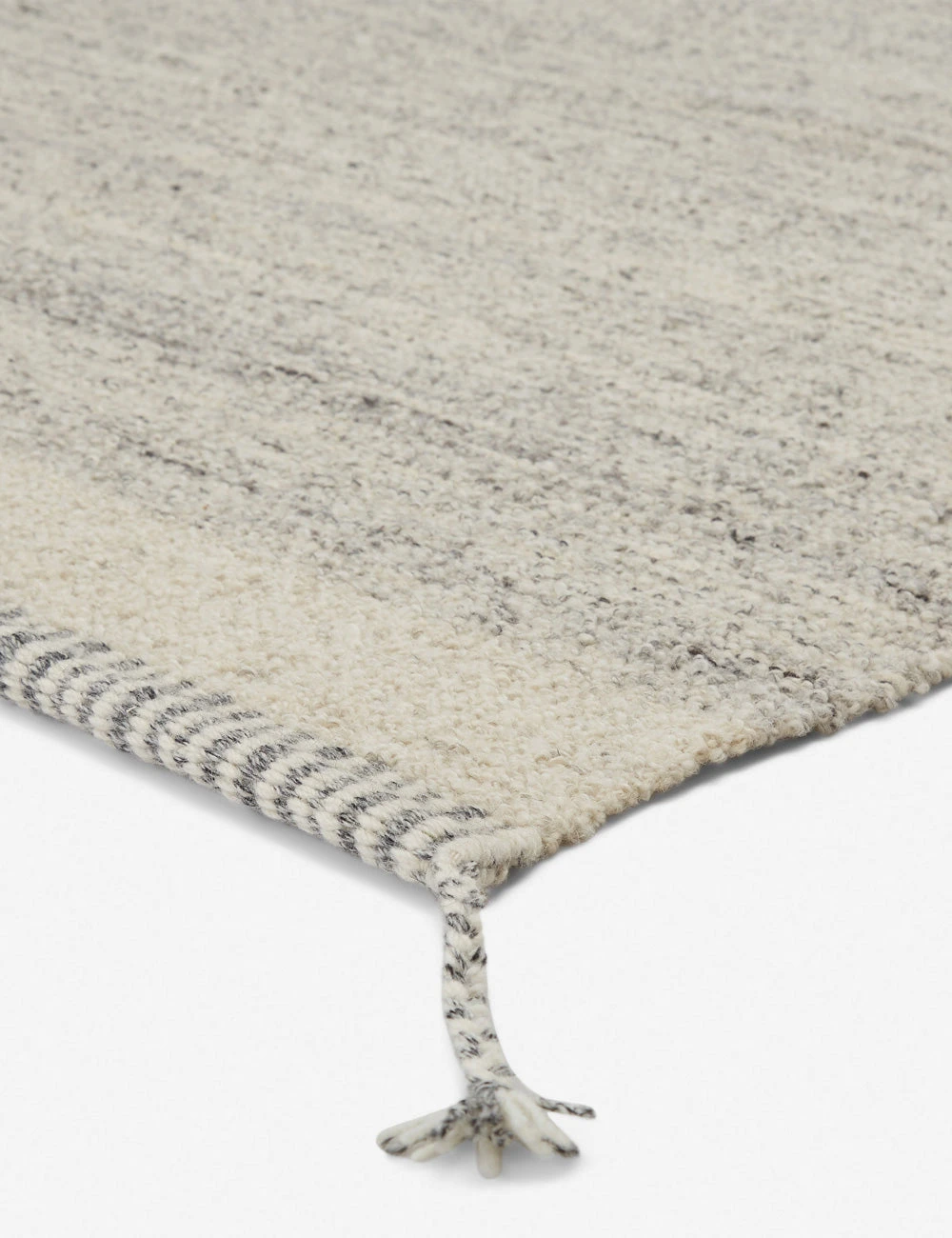 Hand-loomed of texture-rich wool, this area rug offers a minimalist look with its heathered gray-and-ivory tones. A linear border and braided tassels combine to make this rug a versatile statement piece.
