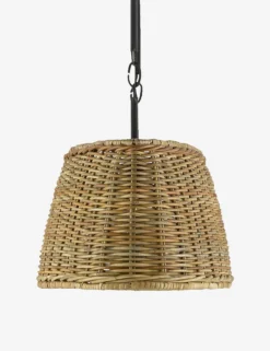 The Fitz chandelier brings statement appeal to cottage-style lighting. Its long basket shade conceals six lights offering plenty of warmth and ambiance—and wrought iron hardware for a rustic touch. Style this wicker chandelier over your kitchen island or dining table for textural charm overhead.