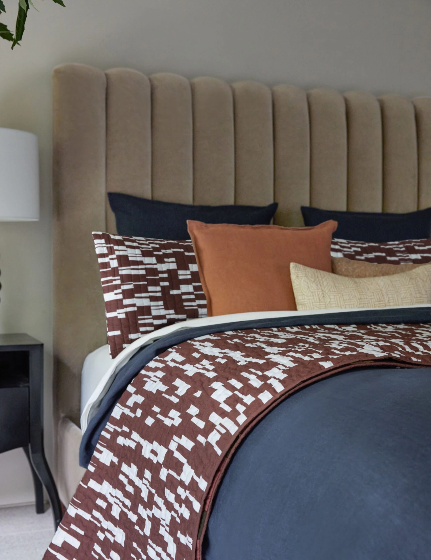 Add a dynamic touch with this quilted pillow sham, which lends abstract geometric design and a monochromatic color palette in natural and black. Woven from lightweight cotton voile, this sham is an ideal layering piece to evolve the look of your bed. Pair it with its matching coverlet or style it on its own to pop against neutral bedding.