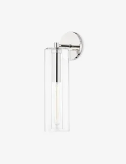 A dramatic, modern wall sconce for directional lighting that features a silhouette full of functional visual detail and a solid antique brass finish that make it an elegant element for a space whether lit or in repose. We love this sconce styled in a warm, neutral space for a polished textural contrast.