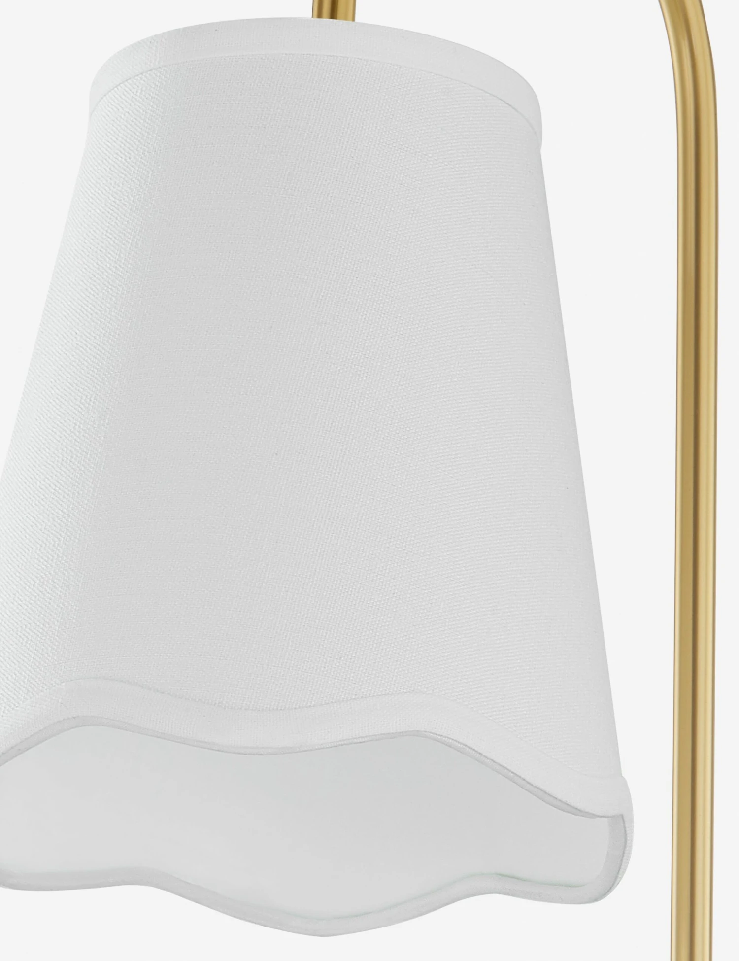 Traditional notes blend with a playful elegance in the Jessica sconce. The metal arm takes a swanlike line into a white linen shade with a wavy edge for a subtle floral charm. We love this wall sconce styled in pairs for elevated lighting in a transitional home design.