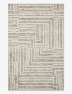 Muted tones reveal an offset stripe design complemented by a high-low pile texture that will ground your room with a dynamic style. Power-loomed from synthetic fibers, this rug offers a durable, easy-care floor rug that will elevate your everyday living space with architectural appeal.