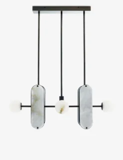 The Maradona pendant light pairs globe shades with alabaster panels to offer a beautiful transitional design that will fill your space with soft, diffused light. This linear pendant is the perfect touch over a kitchen island or dining table.