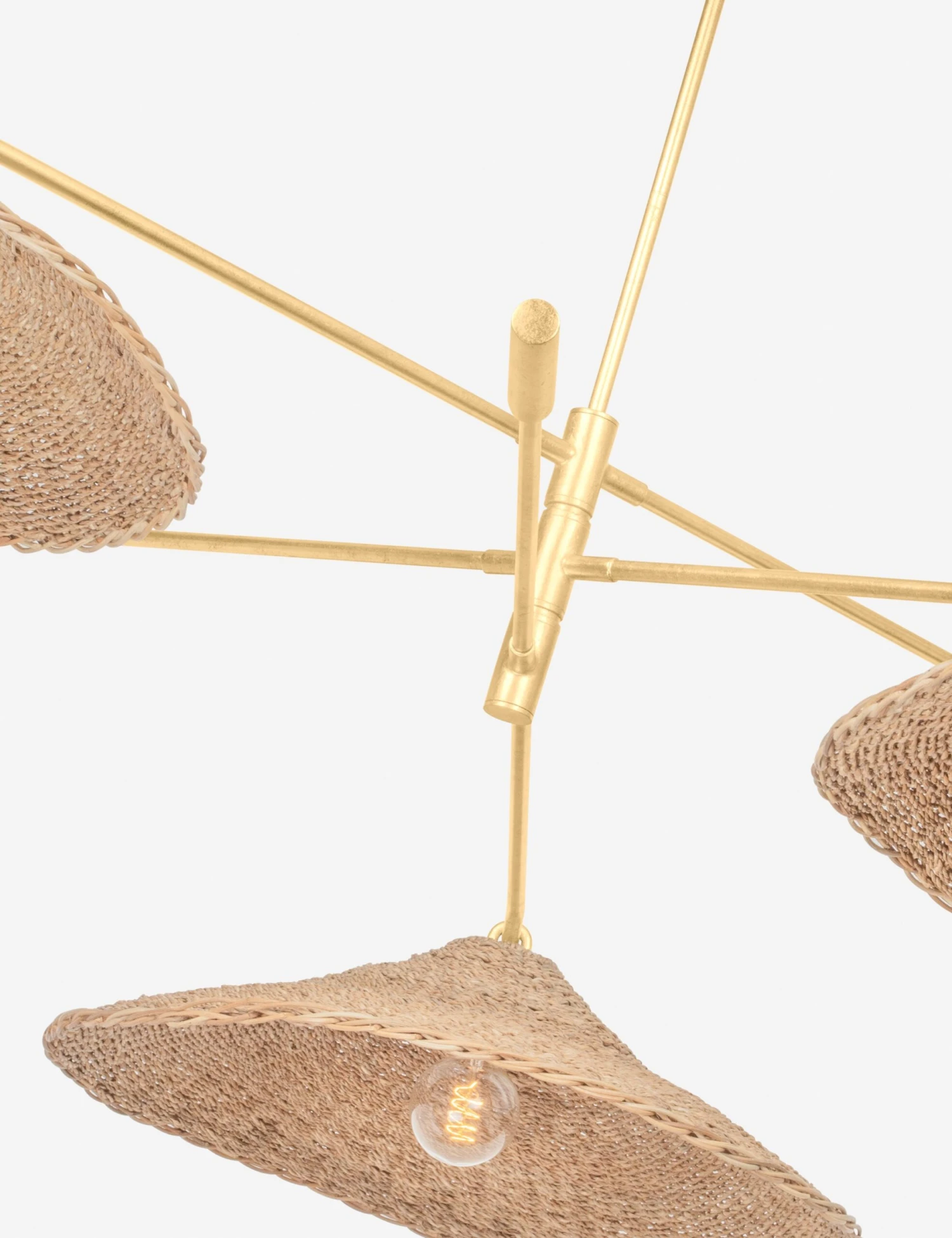 Natural texture meets sleek elegance in this chandelier design. The organic shape of the woven Lampakanay grass shades inspires an artisanal feel paired with gilded arms for added warmth and sophistication. Bring a graceful balance to your overhead lighting with this unique chandelier.