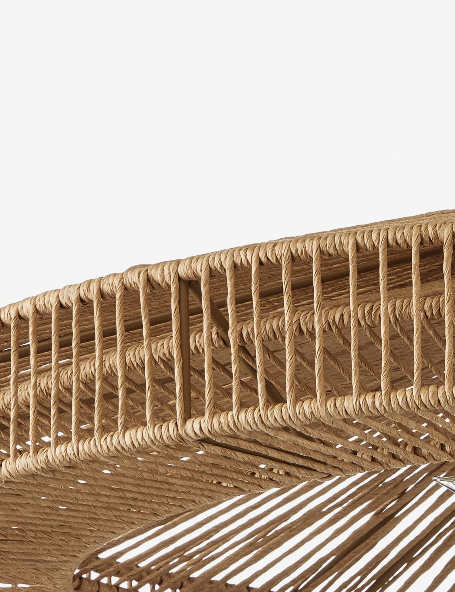 The Oleander chandelier offers a raw, textural quality elevated with an intricate artisanal design. The woven frame creates visual intrigue overhead, fashioning this large chandelier for statement appeal. The nested shade diffuses the light for warmth and ambiance in the room.