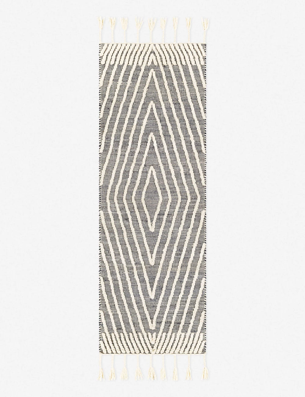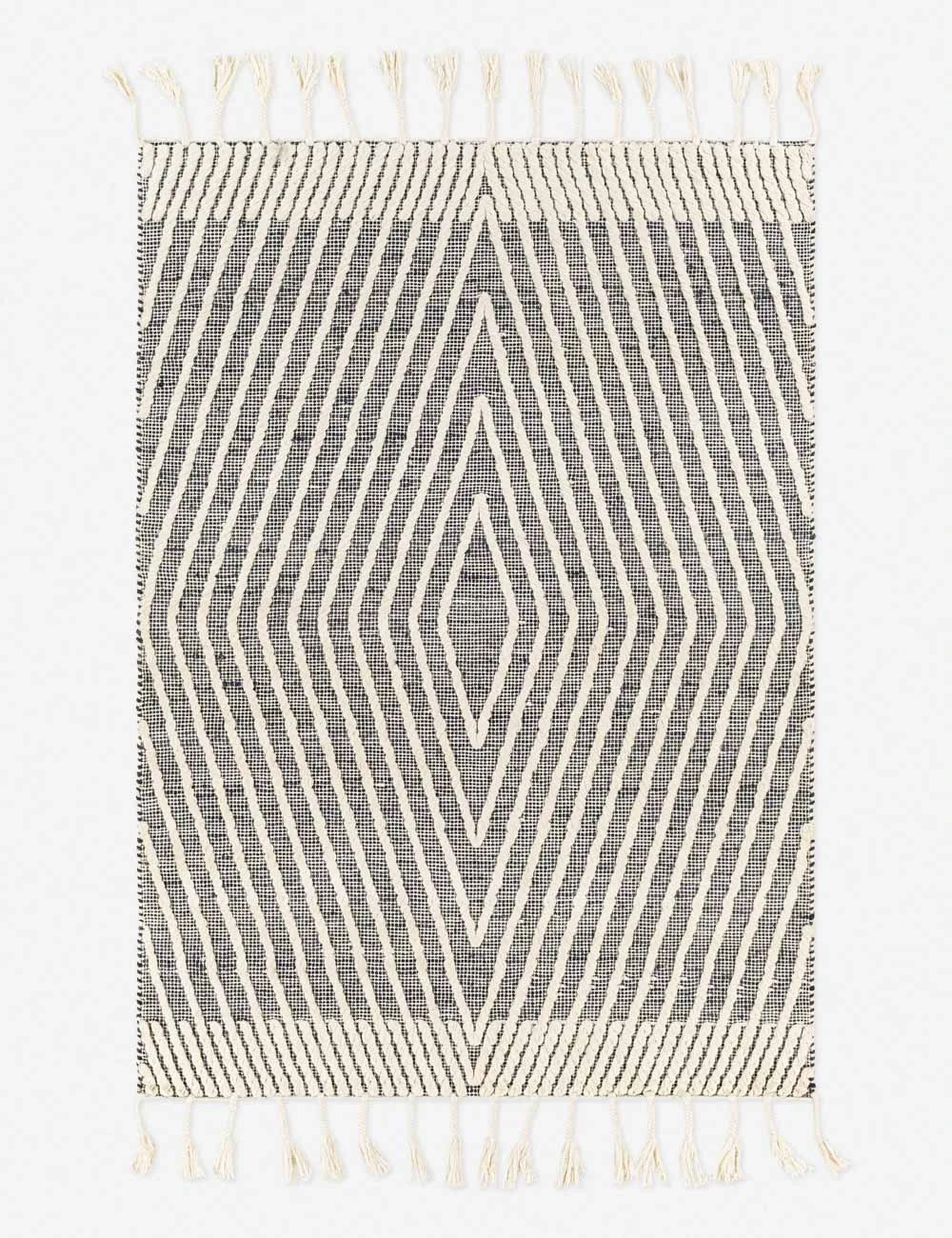 Pairing a unique geometric design with a natural fiber construction, this handwoven rug strikes instant appeal. The tasseled fringe adds a laid-back touch fashioning this modern rug with a fresh and casual feel.