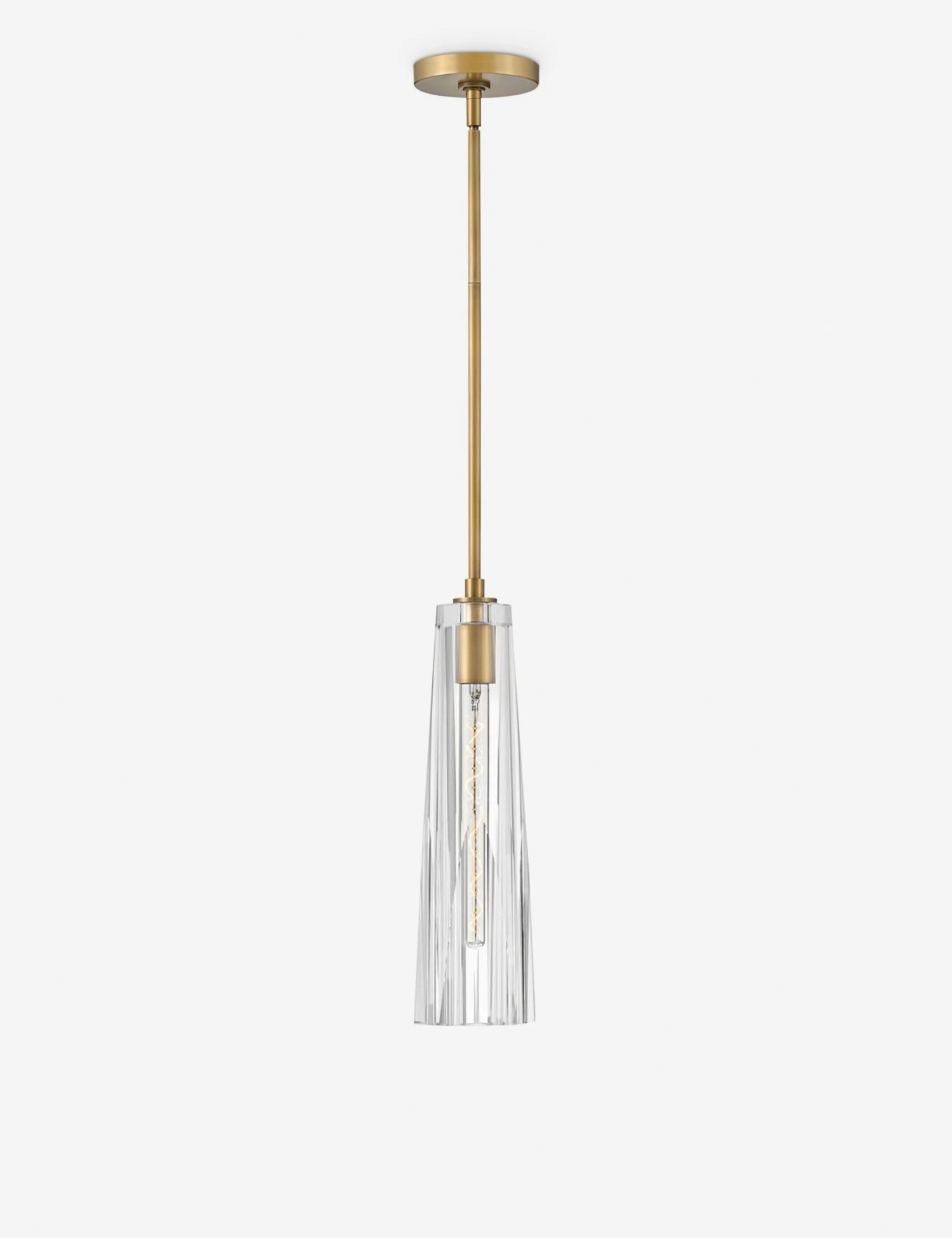 Add a touch of glamour to the room with the Putnam pendant light. The slim, crystal glass shade brings a dramatic edge to the sleek design, offering a versatile fit for transitional and modern decor. This small pendant absolutely stuns as a trio or pair.