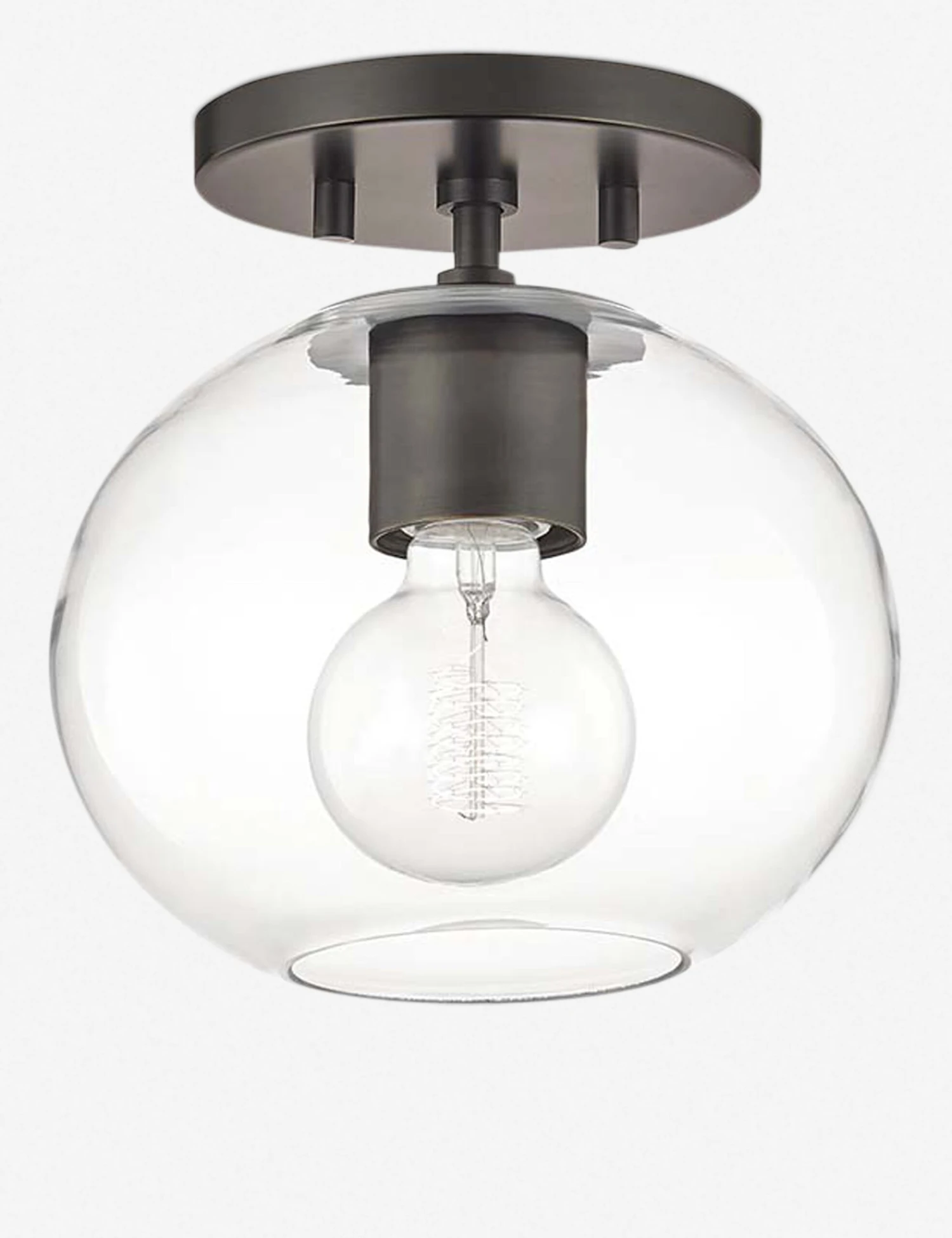 With its straightforward minimalistic design, the Robbie’s spherical glass shade and antiqued bronze base adds modern character to a room. Its sleek and simple form stands up to a variety of styles without overpowering the aesthetic.