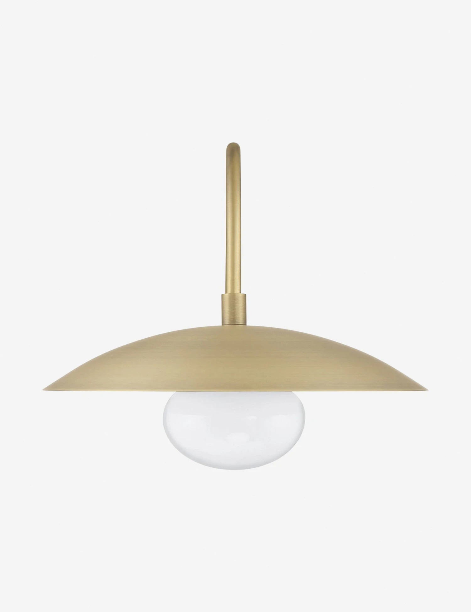 Strike a modern tone in any space with the Shah sconce. Its sleek, sculptural form features a curved arm holding a shallow shade over a frosted glass globe. We love this sconce light for layering bright ambient light into your wall decor with a minimalist feel.