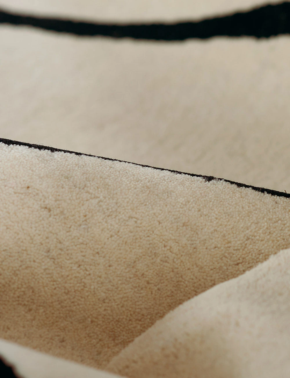 With the polished looks and minimalist appeal of an oversized and abstract linear design, this floor rug brings a free-flowing elegance to your space. Its hand-tufted wool construction offers a high-quality, durable rug for a soft, refining touch.