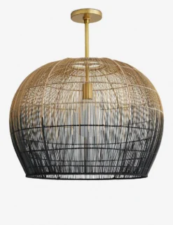 Old-world techniques meet modern design with this stunning dome pendant. The woven textures contrast with a cool ombre finish and brass hardware for a tropical-inspired statement piece you’ll love.