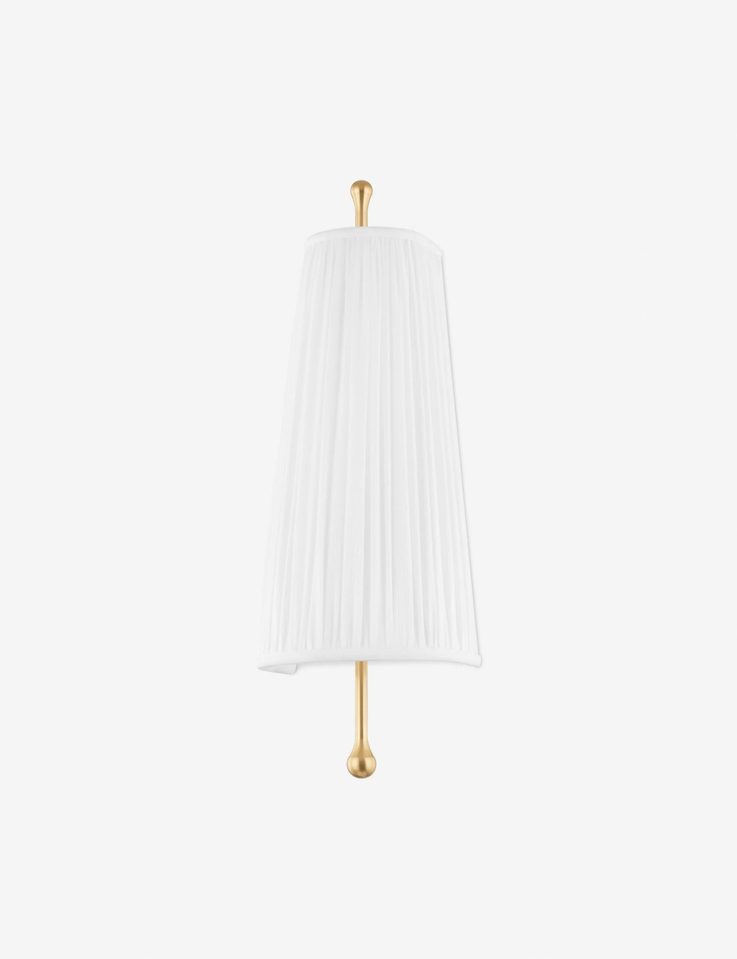 Refresh a timeless style with the Tatiana sconce. The white fabric shade offers a delicate quality with its intricate pleating while the slender stem exposes a touch of brass at each end for a sophisticated finish. Mount this sconce in an airy bedroom or lounge for a charming touch of light.