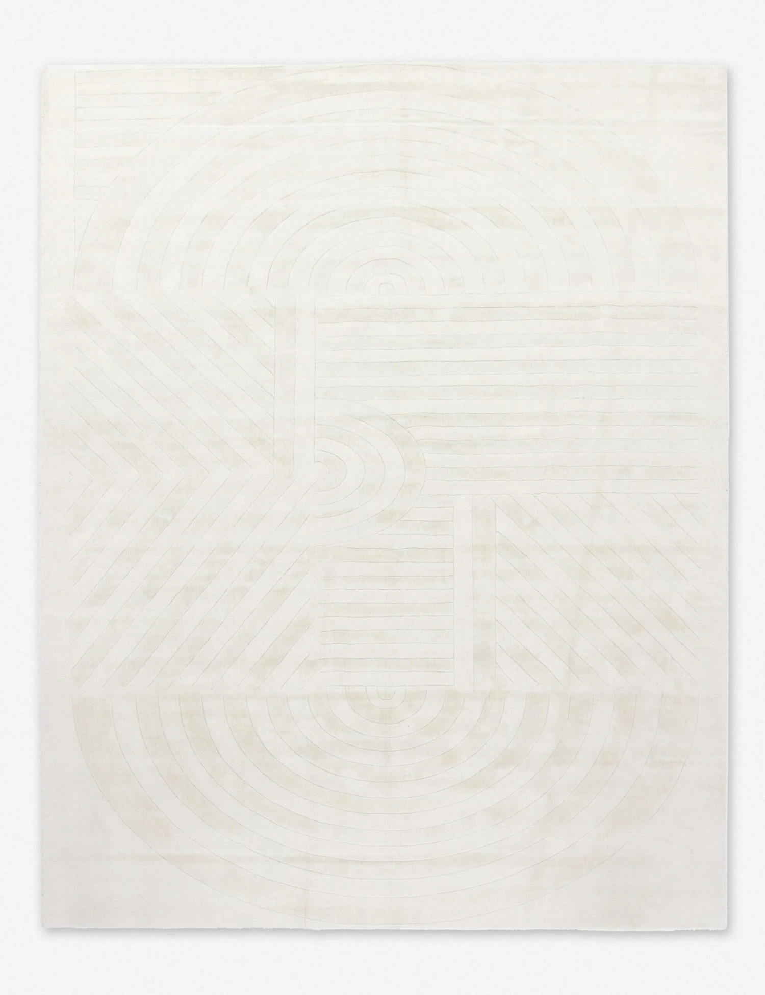 Abstract and asymmetrical design make this floor rug a modern favorite with a twist on traditional elements. The blocked pattern in inviting neutrals, accented with weft fringe, gives statement-making appeal that’s perfect as a living room area rug.