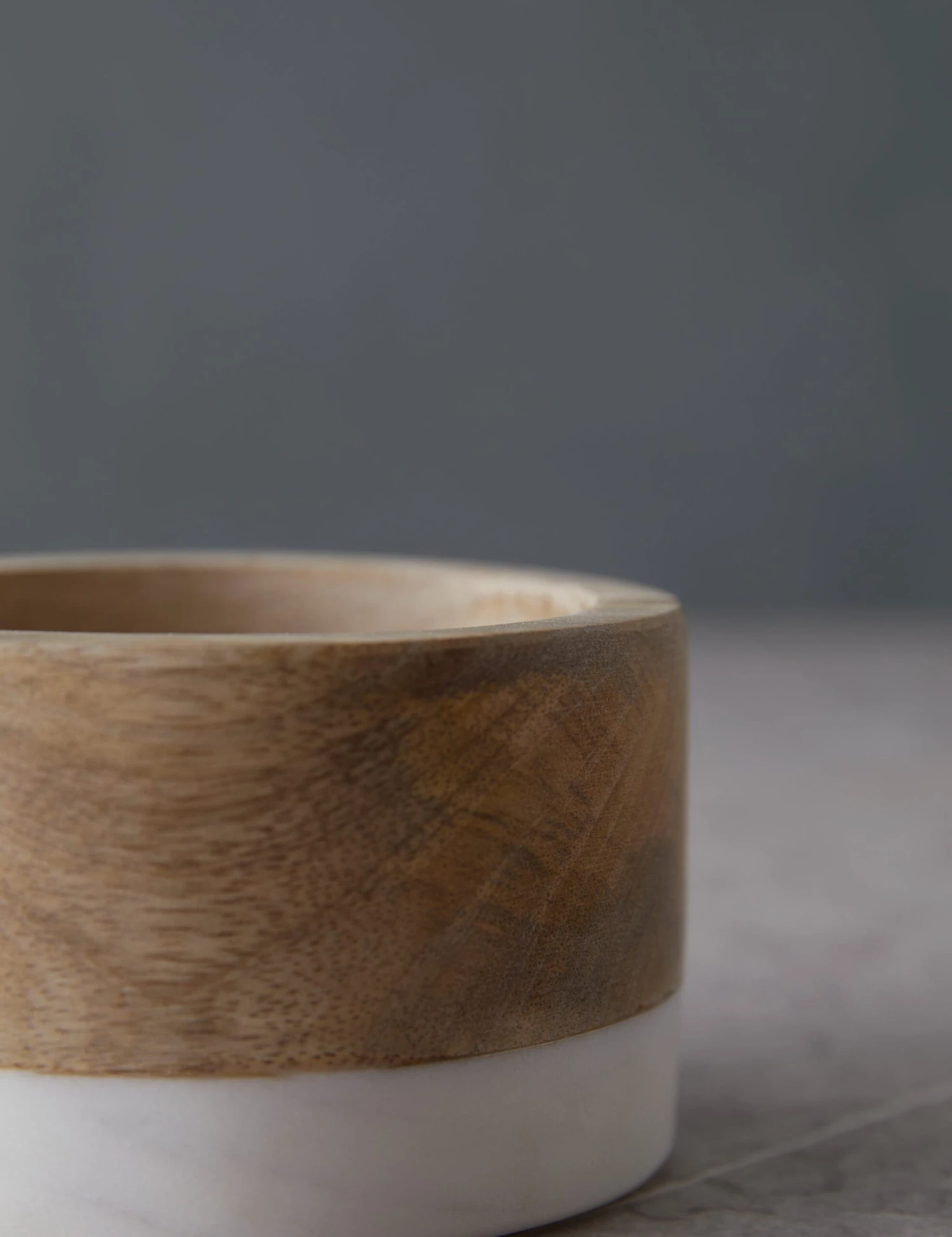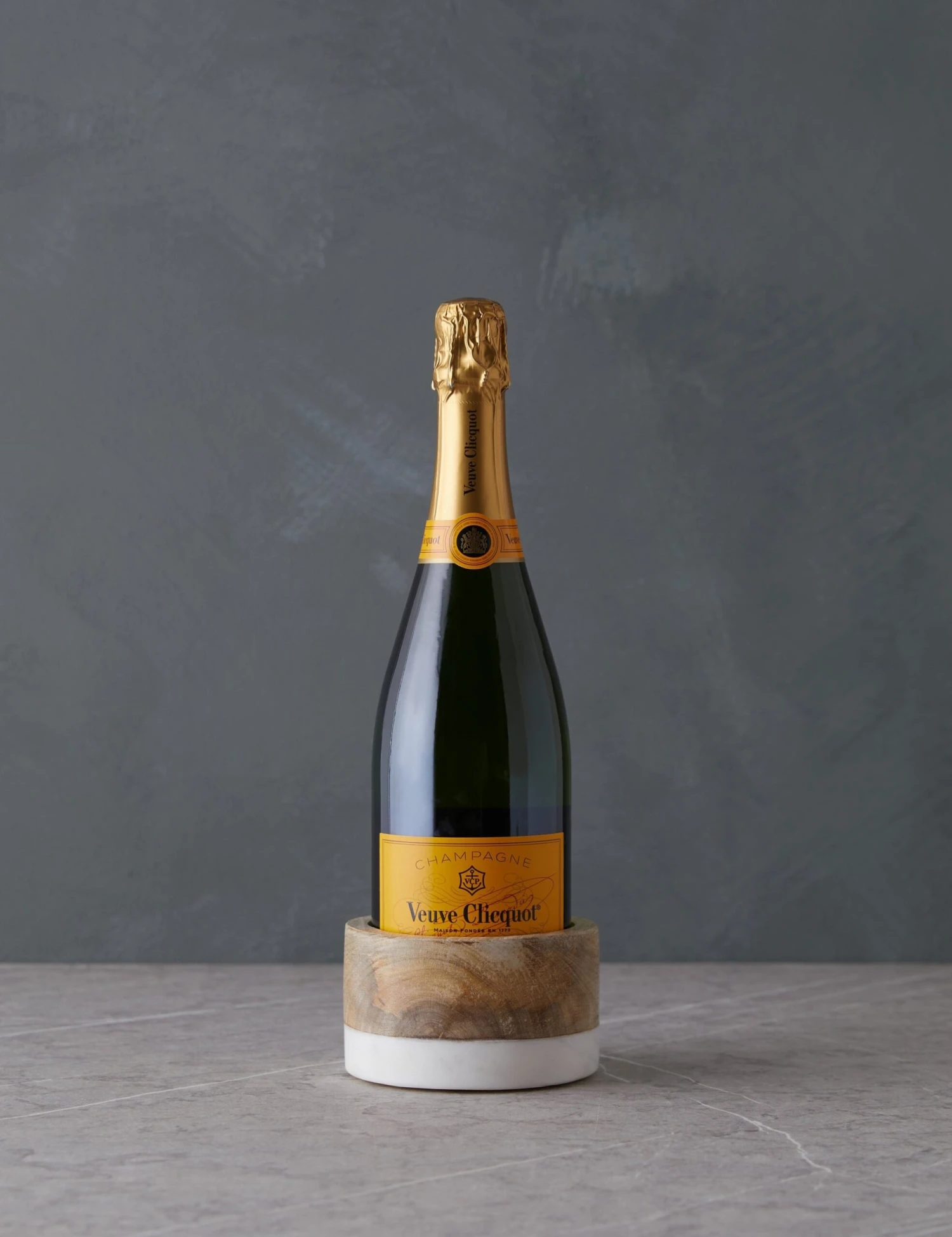 Mixed materials set the tone in this wood and marble bottle holder. Hand crafted with a sleek design, this stylish bottle coaster adds a sophisticated touch to any table—perfect for standard wine bottles or specialty beers.