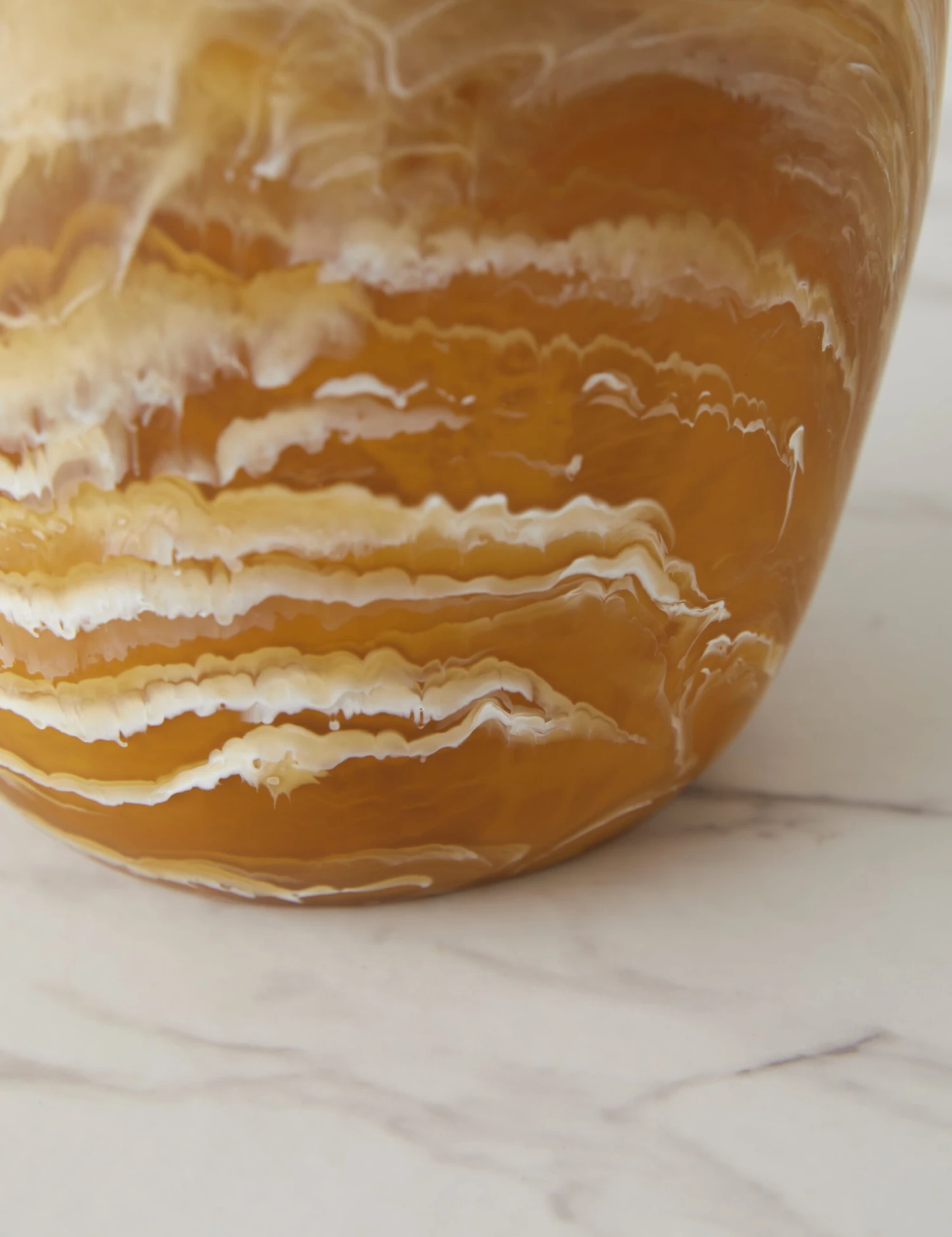 Atlawa makes beautifully formed resin creations in Mexico. This kitchen collection features naturally inspired colors that blend and swirl in a marbleized pattern. Use this resin wine bucket to bring a practical touch with an elemental appeal to your next get together.