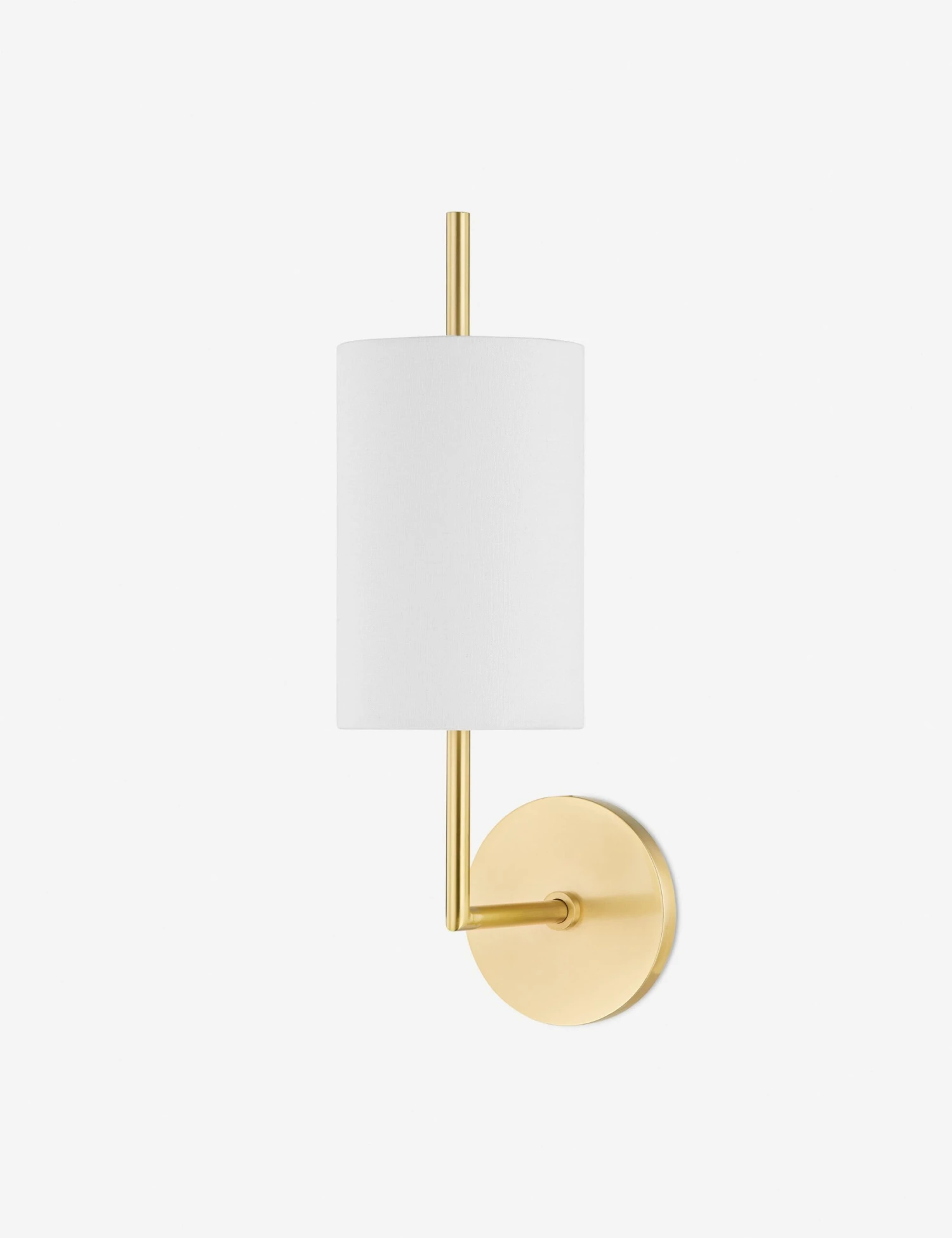A slight adjustment makes all the difference in the world with this tailored sconce light. A slender, linear design feels a bit more modern, with its frame extending beyond the bulb and shade. We love adding this wall sconce to a chic powder bath, bedroom, or dining room.